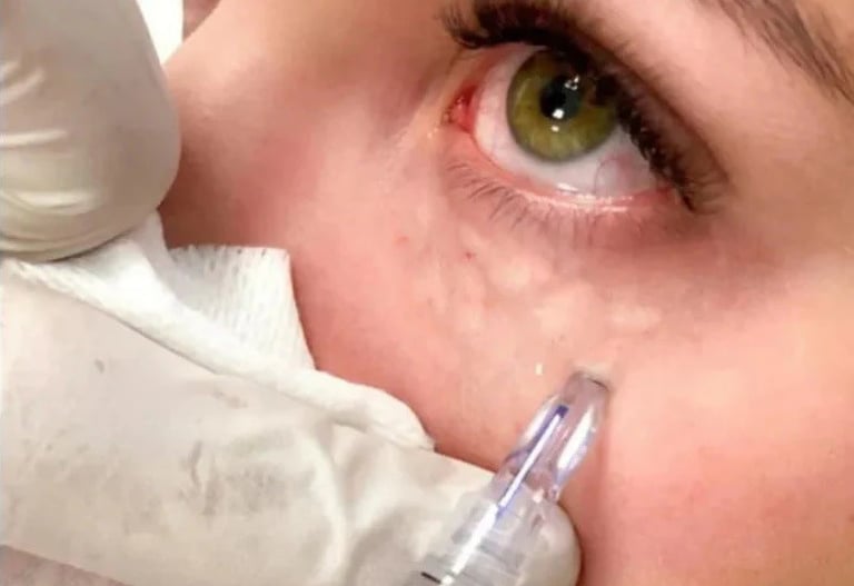 Ελαφριά ερυθρότητα και μικρές οπές βελόνας θα υποχωρήσουν σε 2–3 ημέρες.