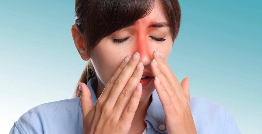 • Πόνο ή πίεση στο μέτωπο, στα μάγουλα ή γύρω από τα μάτια