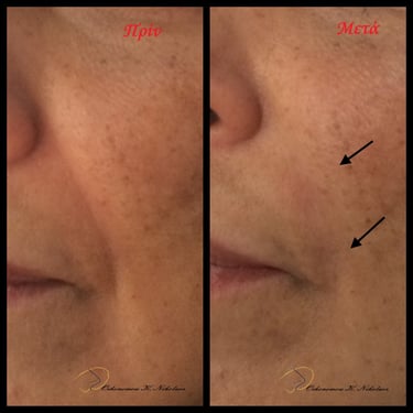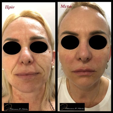 Τα αποτελέσματα είναι άμεσα ορατά, χαρίζοντας μια φυσική, ανανεωμένη και νεανική εμφάνιση, με ομοιόμορφη υφή, φωτεινότητα και ενυδάτωση σε βάθος. Κάθε θεραπεία προσαρμόζεται στις ανάγκες του ασθενούς, διατηρώντας την ταυτότητα και τα μοναδικά χαρακτηριστικά του προσώπου.