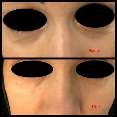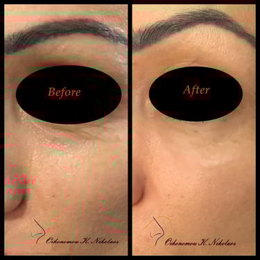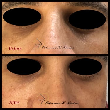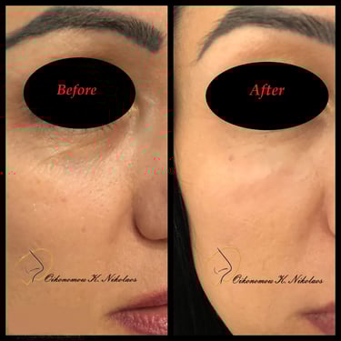 Μαύροι κύκλοι κάτω από τα μάτια (tear troughs): για αναζωογόνηση της περιοχής, μείωση του σκίασης και φωτεινότερο βλέμμα